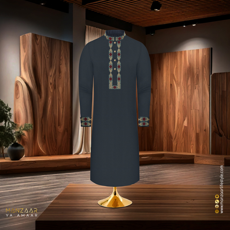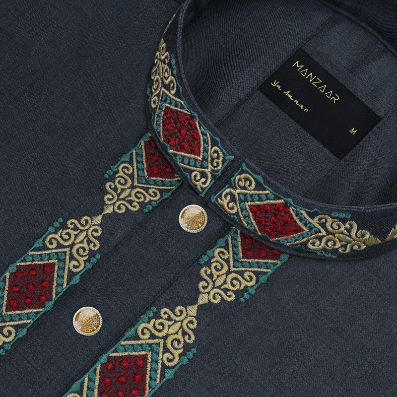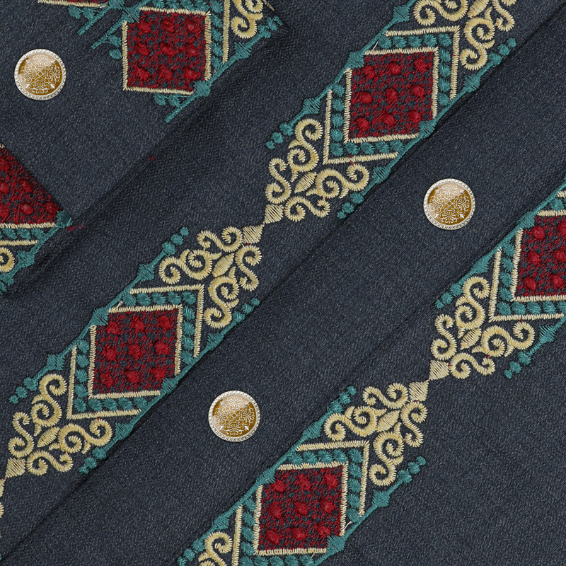 Tropical Suiting Fabric With Embroidered Hand Work.