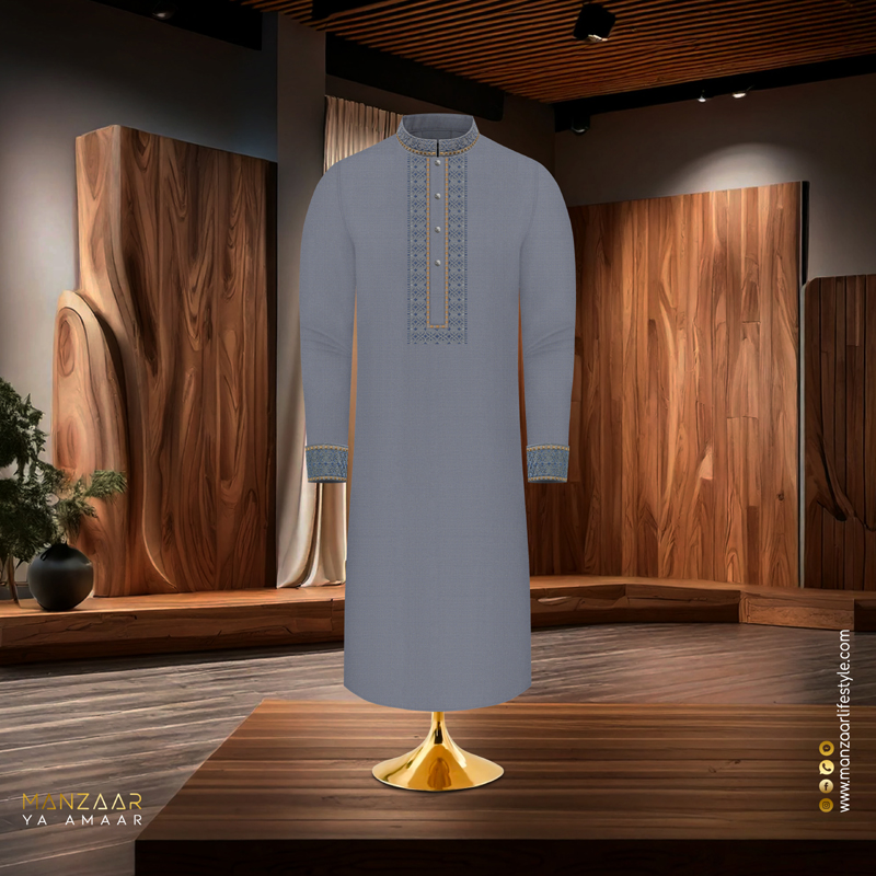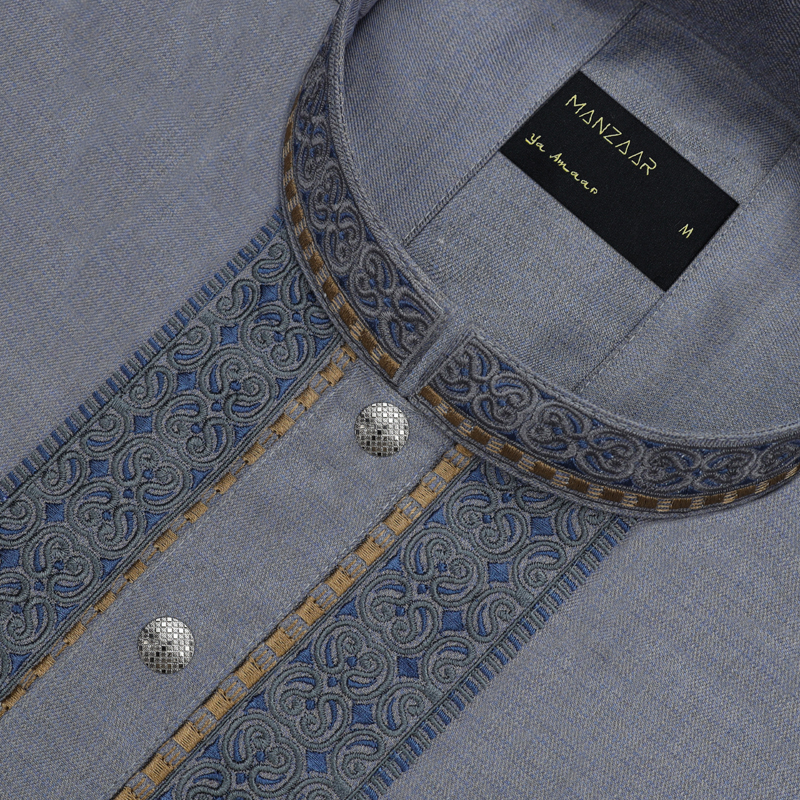 Tropical Suiting Fabric With Embroidered Hand Work.